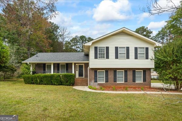 Welcome to this charming Fayette Villa Estates home for sale in Fayetteville! The covered front porch leads into the foyer and living room, flowing into the dining room and kitchen with stainless steel appliances and a breakfast area overlooking the backyard. The foyer also allows direct access into the kitchen. Upstairs, the primary suite features a beamed vaulted ceiling, walk-in closet, and walk-in shower, plus three additional bedrooms and a full bathroom upstairs. The lower level includes a family room with a fireplace that takes you to the backyard, a half bathroom, a laundry closet, and two-car garage. Additional features offer a new roof and almost new HVAC system, whole house fan and fully encapsulated crawlspace. Outside, enjoy privacy, a cozy paved patio, fenced pool, fenced dog run, two storage sheds, and an additional two-car stand alone carport. No HOA! This home is also located within close proximity to countless conveniences, including Peachtree City, Trilith Studios and the future home of the US Men's/Women's soccer team.